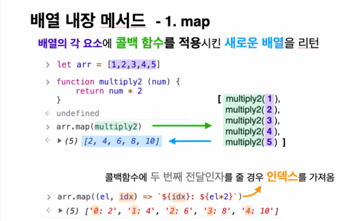 배열의 각 요소에 콜백함수를 적용시킨 새로운 배열을 리턴해준다.