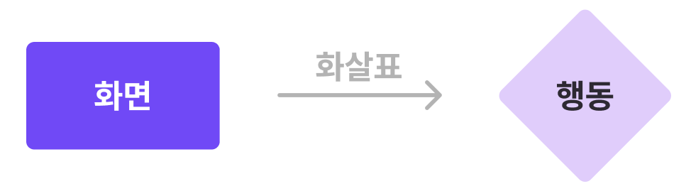 사용자 흐름을 다이어그램으로 작성할 때, 기본적으로 세 가지 요소를 사용한다.